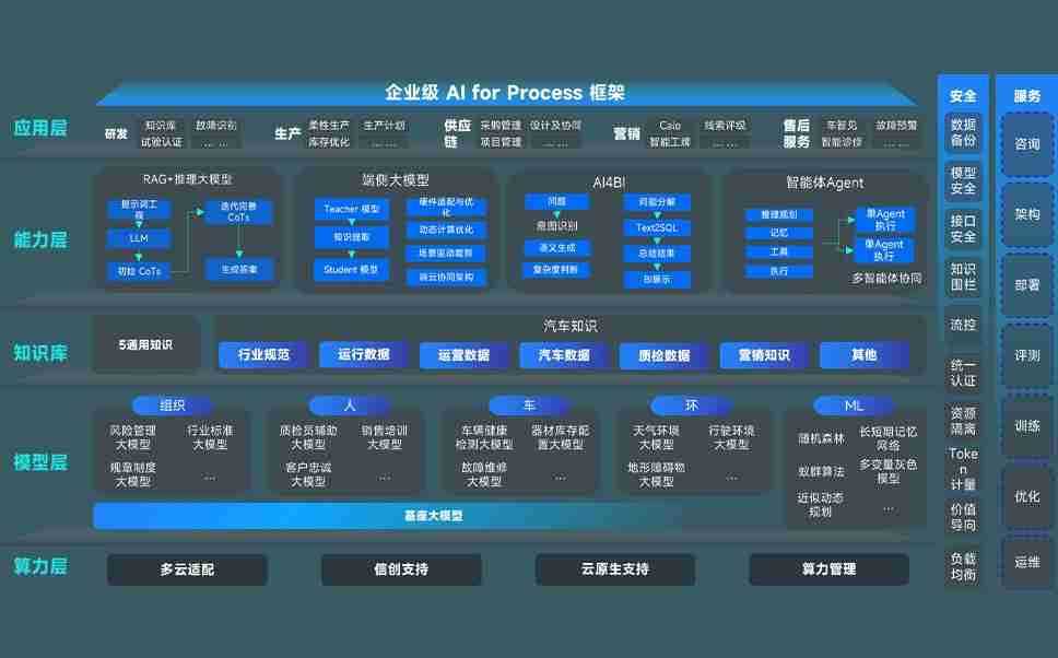 端到端的一站式AI工作空间深度融合了从企业战略规划到日常经营的全流程业务板块,,,,定向解决车企内部领域多、、部门多、、链条长、、、场景碎片化等难题,,支持车企快速构建以AI为核心的生产力写作体系,,,,实现任务执行与AI能力的无缝集成与交互
